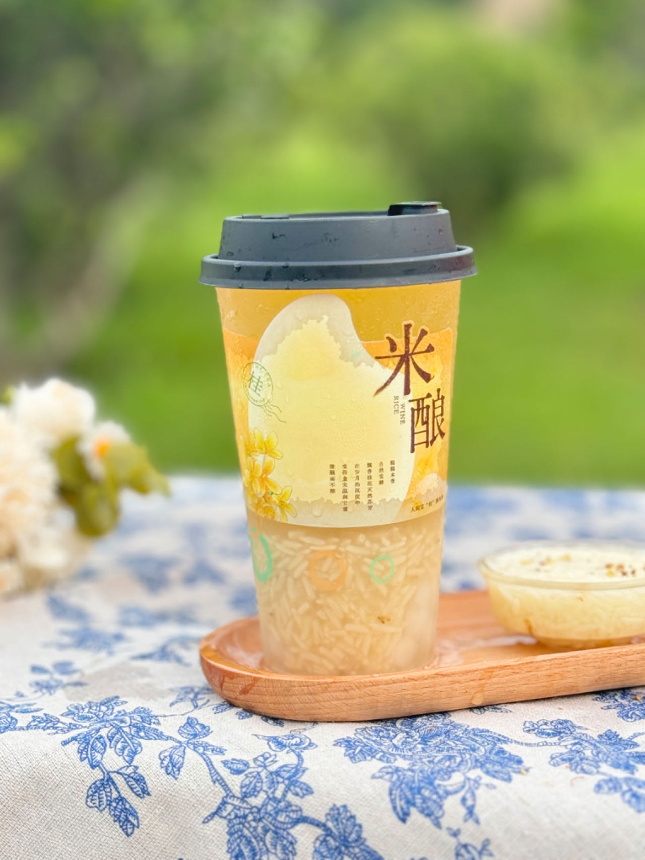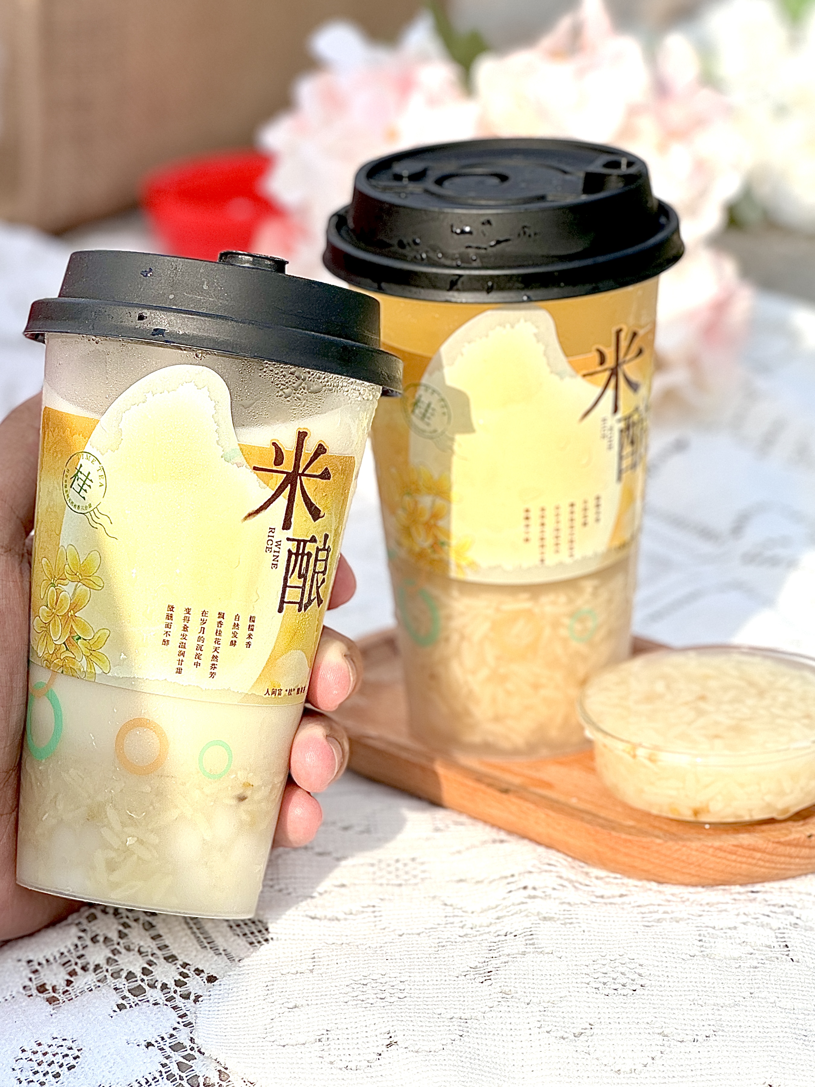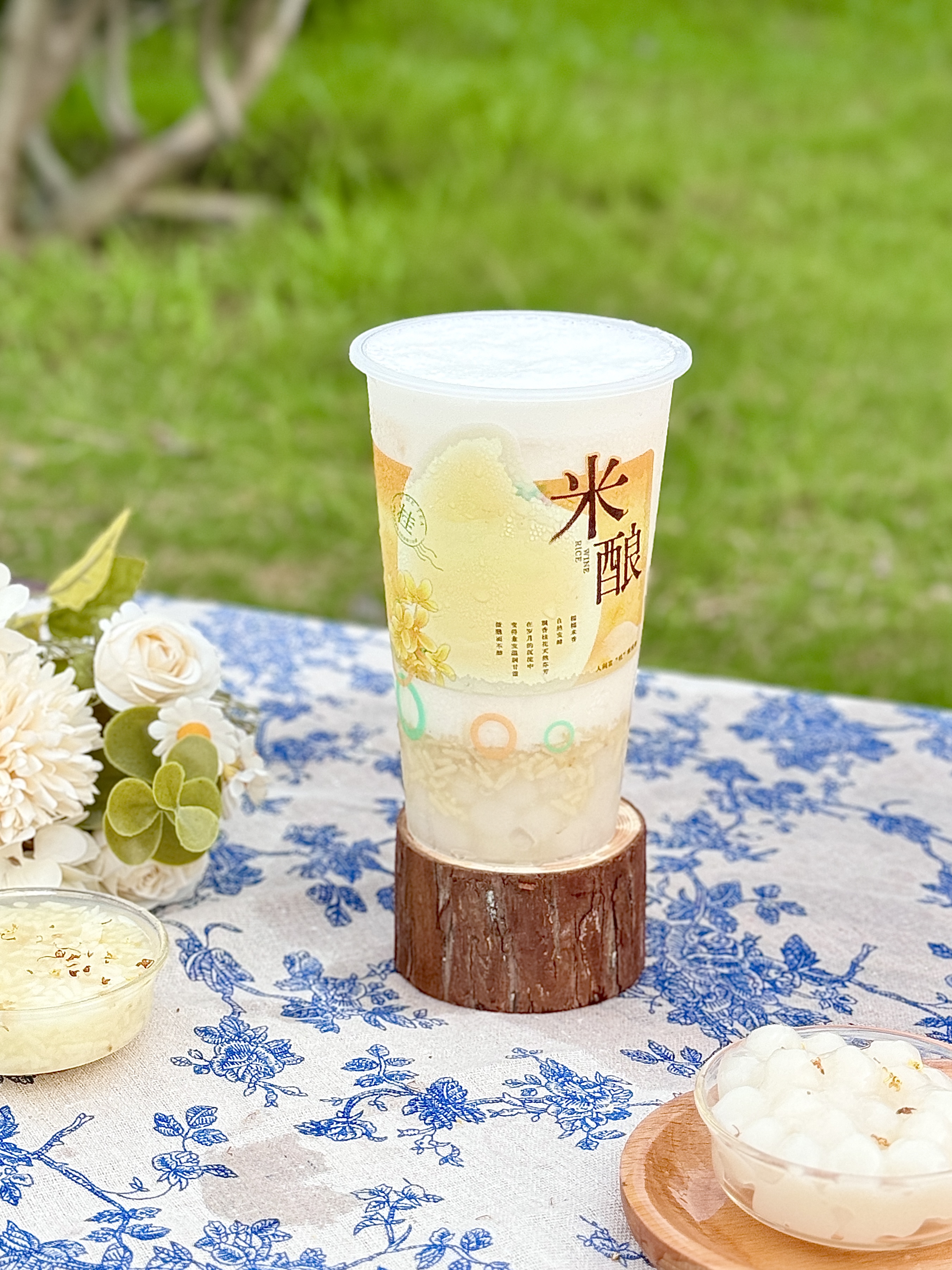 在飲品杯的底部也會(huì)鋪了一層桂花米釀,提升入口時(shí)的香氣,糯米小丸子的糯香讓飲品的口感更加飽滿豐富。