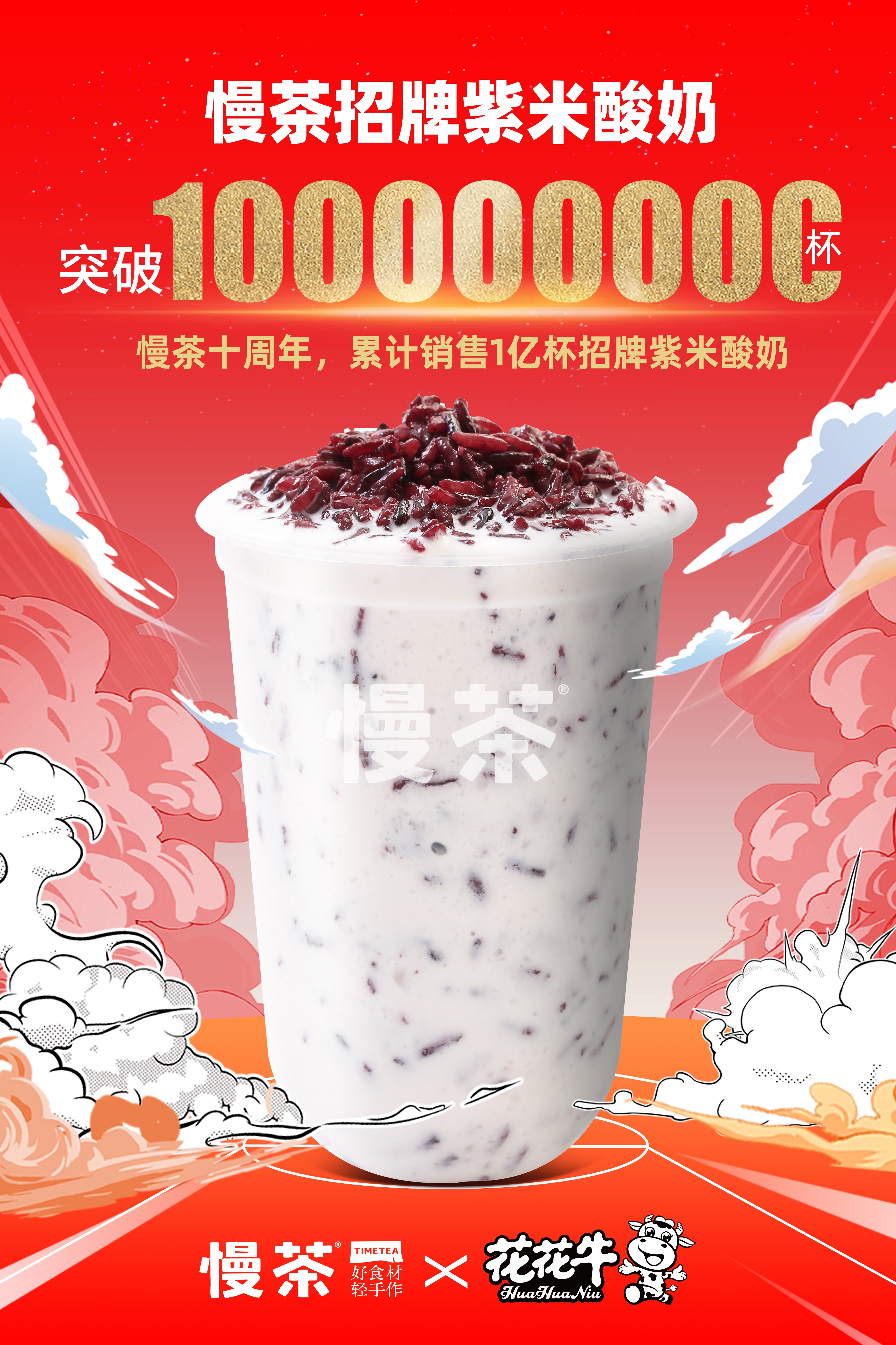 也有伙伴會好奇舉行這次活動的原因。首先是在大家的支持陪伴下,慢茶度過了第一個十年,我們的王牌產(chǎn)品——招牌紫米酸奶的銷量也突破1億杯啦~