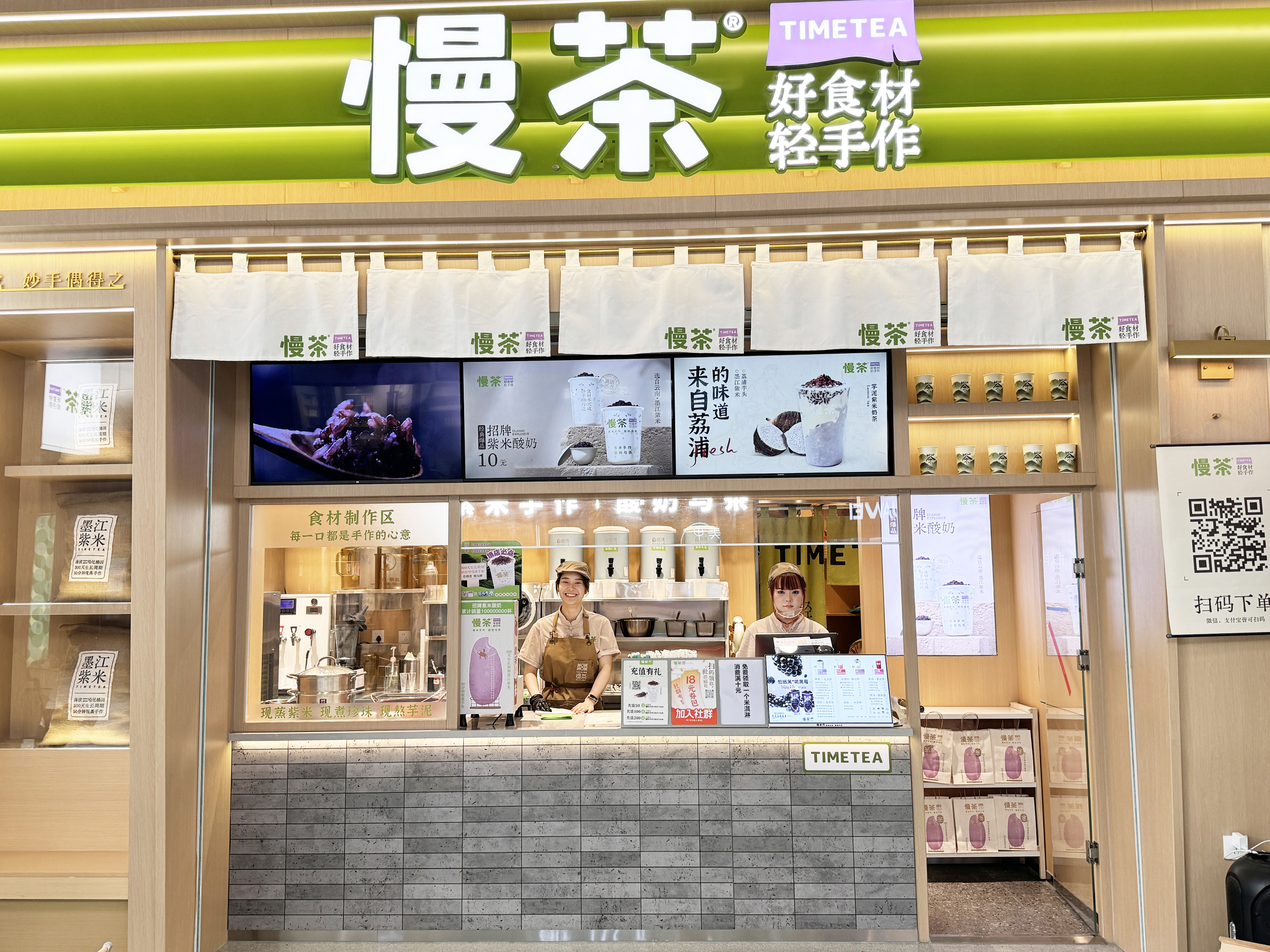 全新的綠色系門頭,更為亮眼,這是貼近山野自然的顏色,也是隱含著我們想要把綠色健康的好食材融入到每一款產(chǎn)品中的初心。